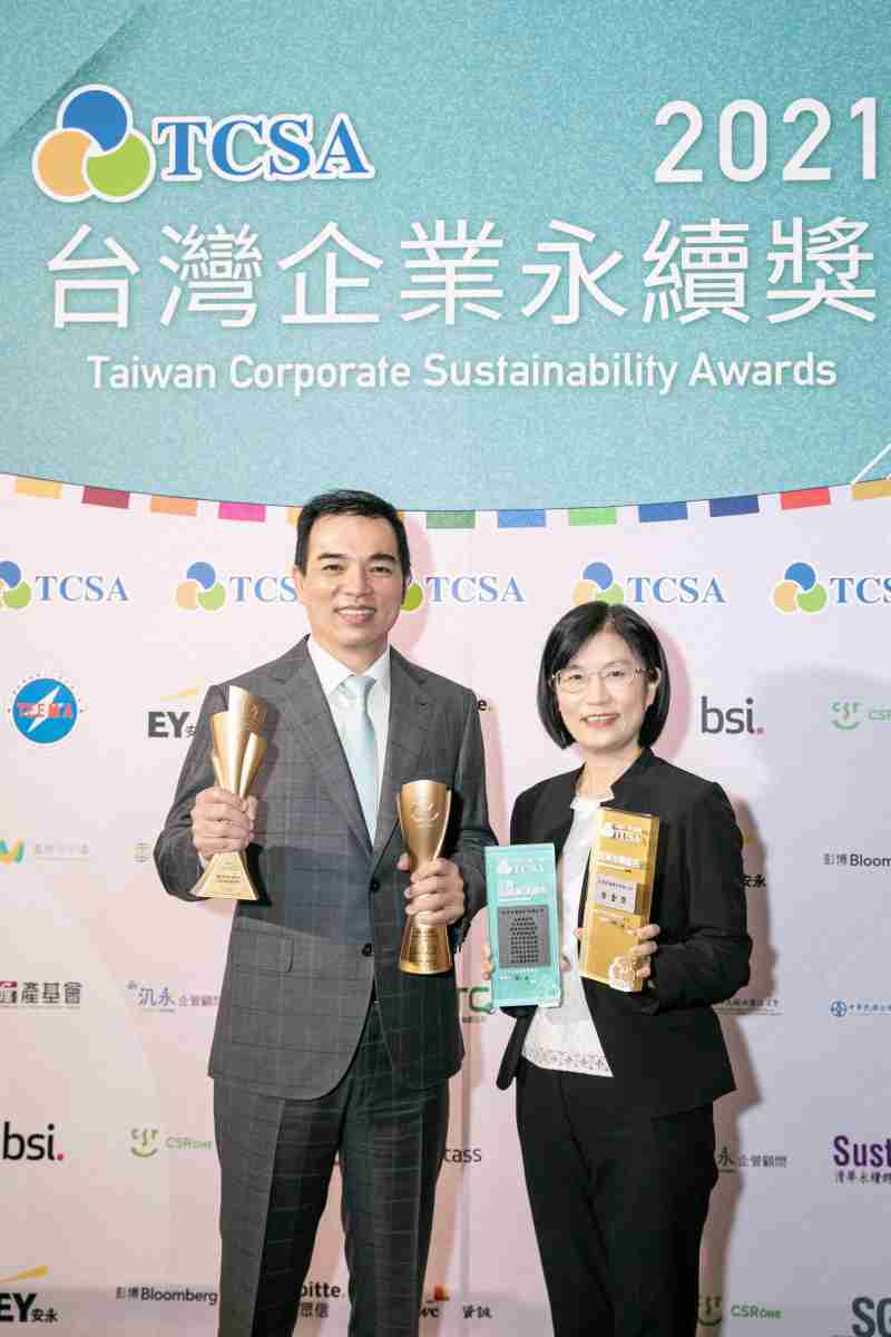 达在台湾永续奖所评比环境、、、、社会、、、治理等各面向的永续绩效均获高度肯定 (左:z6mg·人生就是博光电总经理暨营运长柯富仁,,右:z6mg·人生就是博光电永续长古秀华)