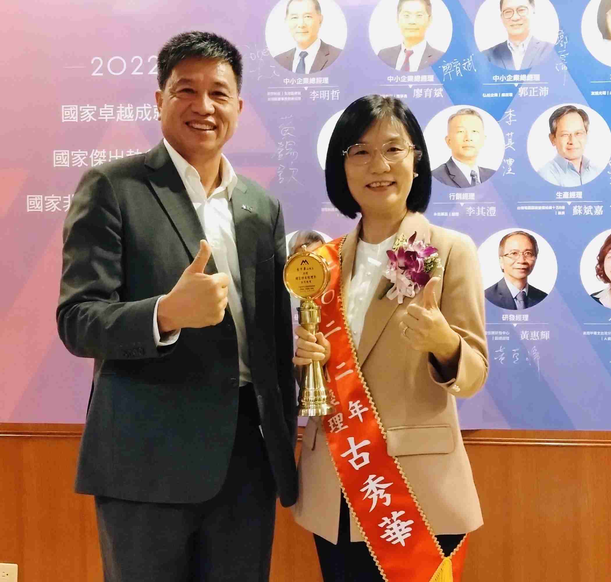 古永续长对企业永续发展的付出与杰出表现,,,,接连获得2020亚洲顶尖永续超级女性️以及2022亚太顶尖永续长奖,,,这次更得到中华民国企业经理协进会第40届「国家杰出经理奖」。。。️ 「从一而终,,砥砺自己跨域学习、、、勇于面对多元挑战。。。」在全球ESG和低碳转型浪潮下,,,古秀华带领团队贡献所学,,一路协助公司转型成长。。。。 肯定其对企业永续发展领域的投注心力及杰出贡献