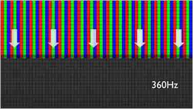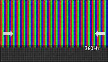 传统液晶驱动是从左到右单向进行,,,,在画面更新速度愈来越愈快的情况下,,,位于驱动线路末端的右下角区域,,,,画素的闸极来不及在短时间内获得足够电压,,,无法显示出正确的颜色资讯。。。。 |