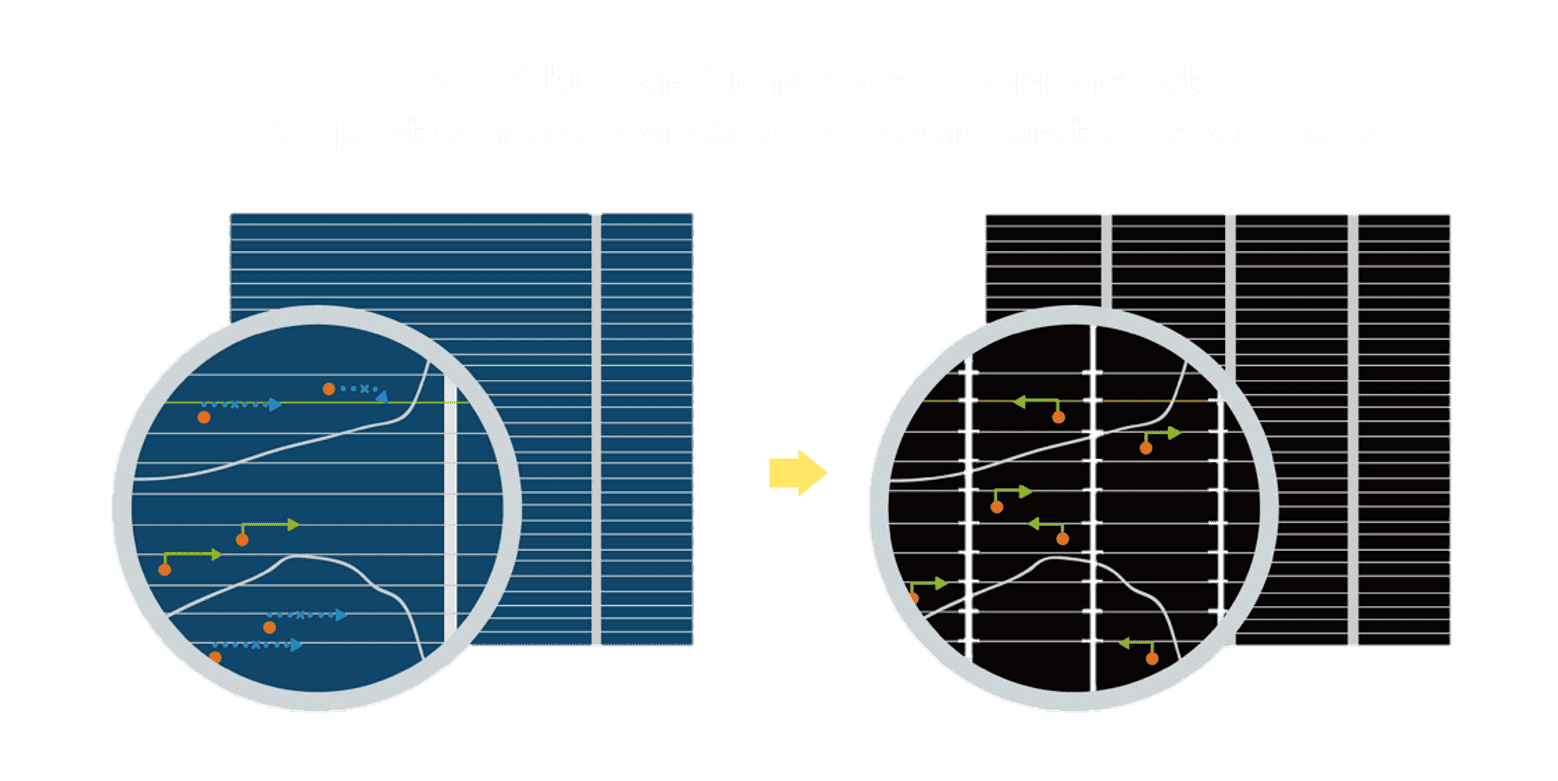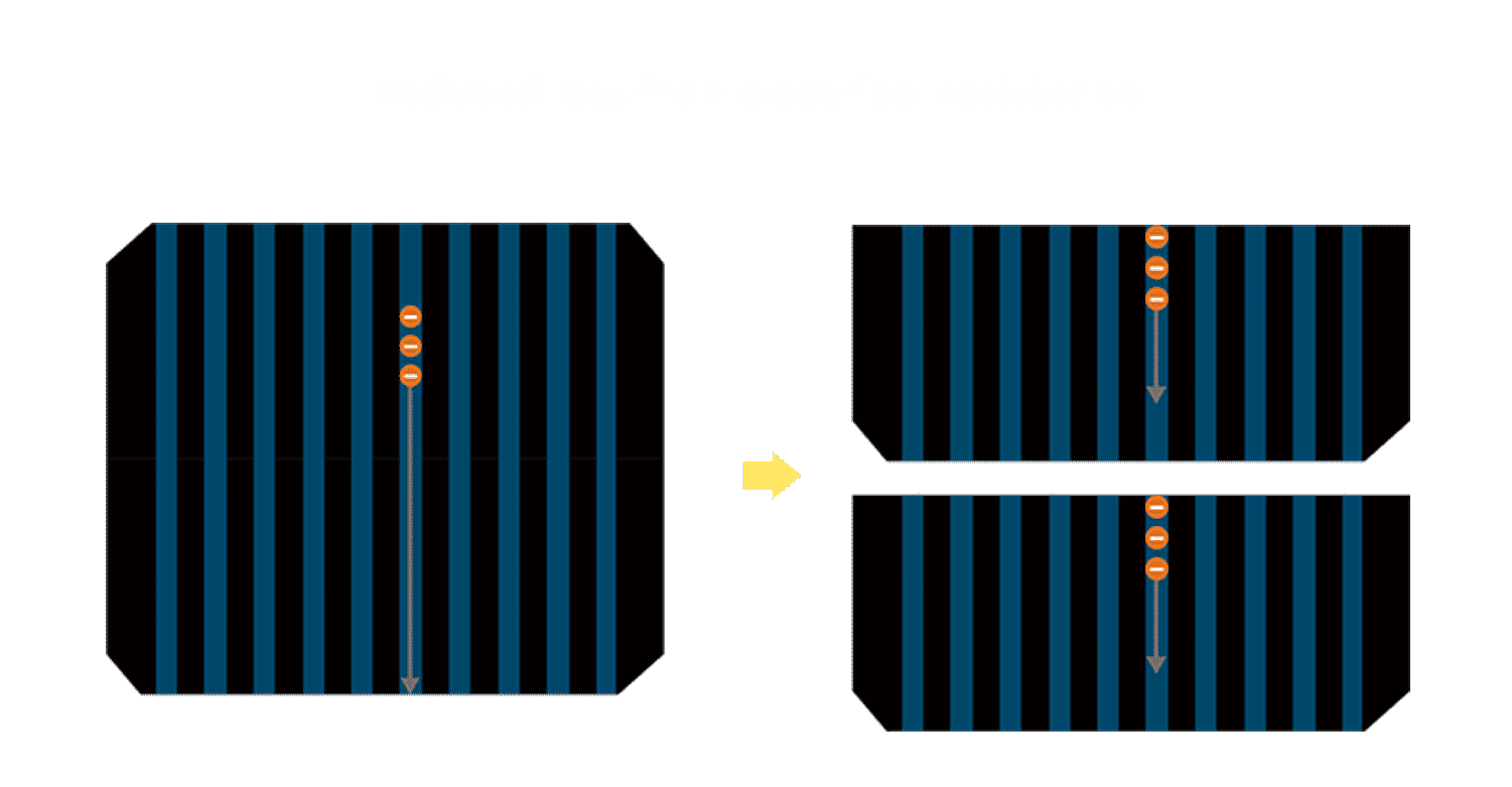 - 结合半切电池,,降低遮阴影响、、提升模组抗隐裂能力、、并减少电阻损耗,,,进一步提升模组发电效能。。。
